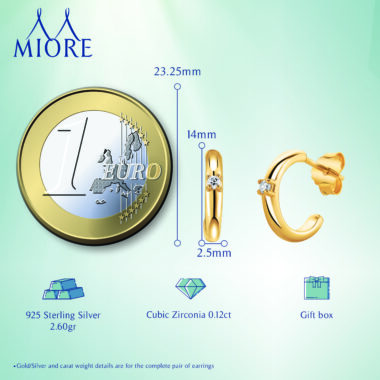 Earrings 925 Sterling Silver Gold Plated Cubic Zirconia.