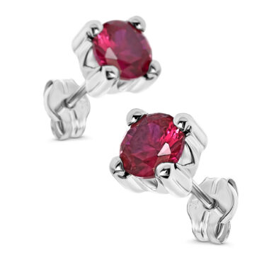 Earrings 9KT (375) White Gold Created Ruby.