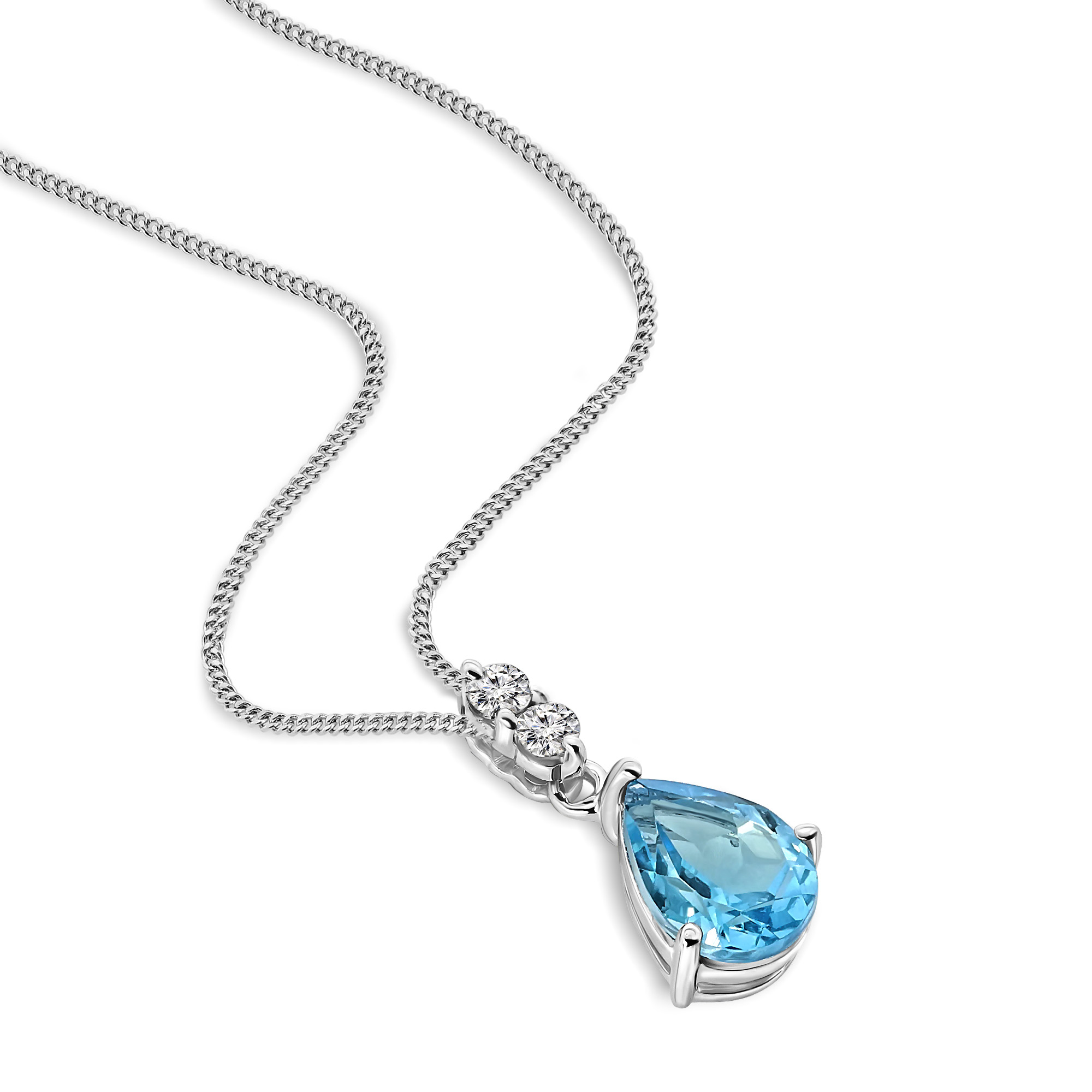 Necklace 9KT (375) White Gold Blue Topaz.
