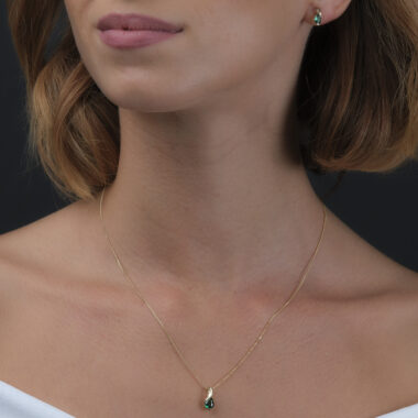 Necklace 9KT (375) Yellow Gold Created Emerald.