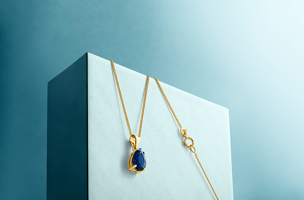 Necklace 9KT (375) Yellow Gold Created Sapphire.